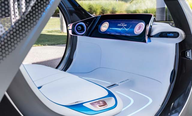 New individualisation options help users to recognise that it is “their” vehicle: by means of the Black Panel Grille at the front as well as large projection surfaces at the sides, the smart vision EQ fortwo allows unprecedented individualisation of the vehicle, ideal for car sharing. Freed from the task of driving, the passengers are able to relax in the large interior.